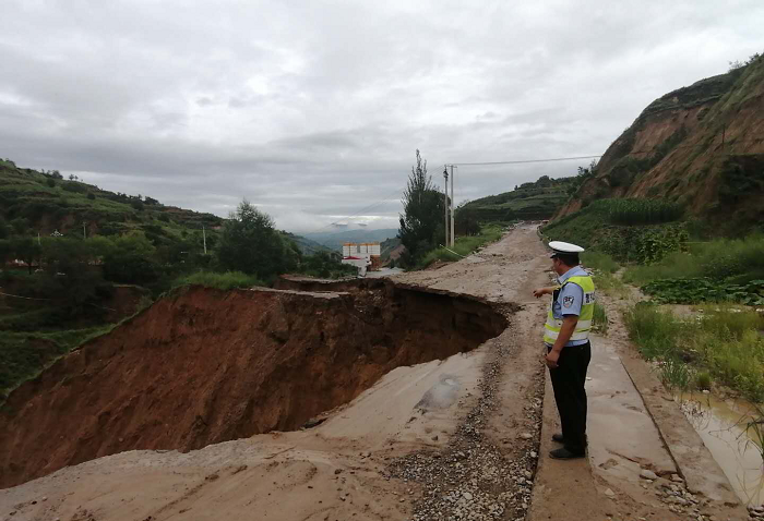 西茂公路路毁严重,阻断交通,我队民警在先期设置临时提醒标志外,及时将道路******隐患情况上报大队,防止事故的发生。