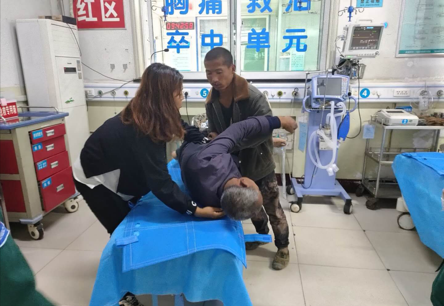 据了解,病人患有高血压、尿毒症等疾病,在家里给牛切草时,突然肚子侧部疼痛难忍,在地上打滚,相伴的儿子立即借朋友的车送往医院,当驾驶至下安路段时,恰遇车流量大,发现交警执勤,于是求助了交警!